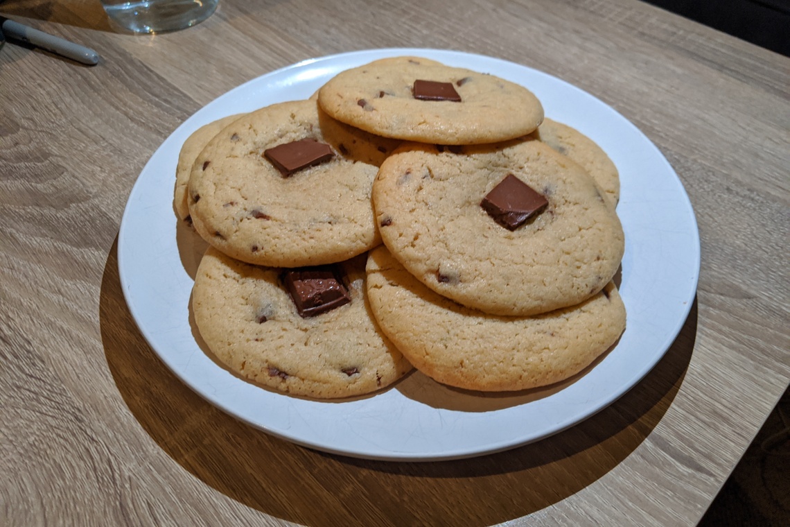 Bake at 180℃ (gas mark 6) for 10 minutes, until slightly brown. Take the tray out of the oven and leave the cookies to cool on the tray for at least 30 minutes before removing them.